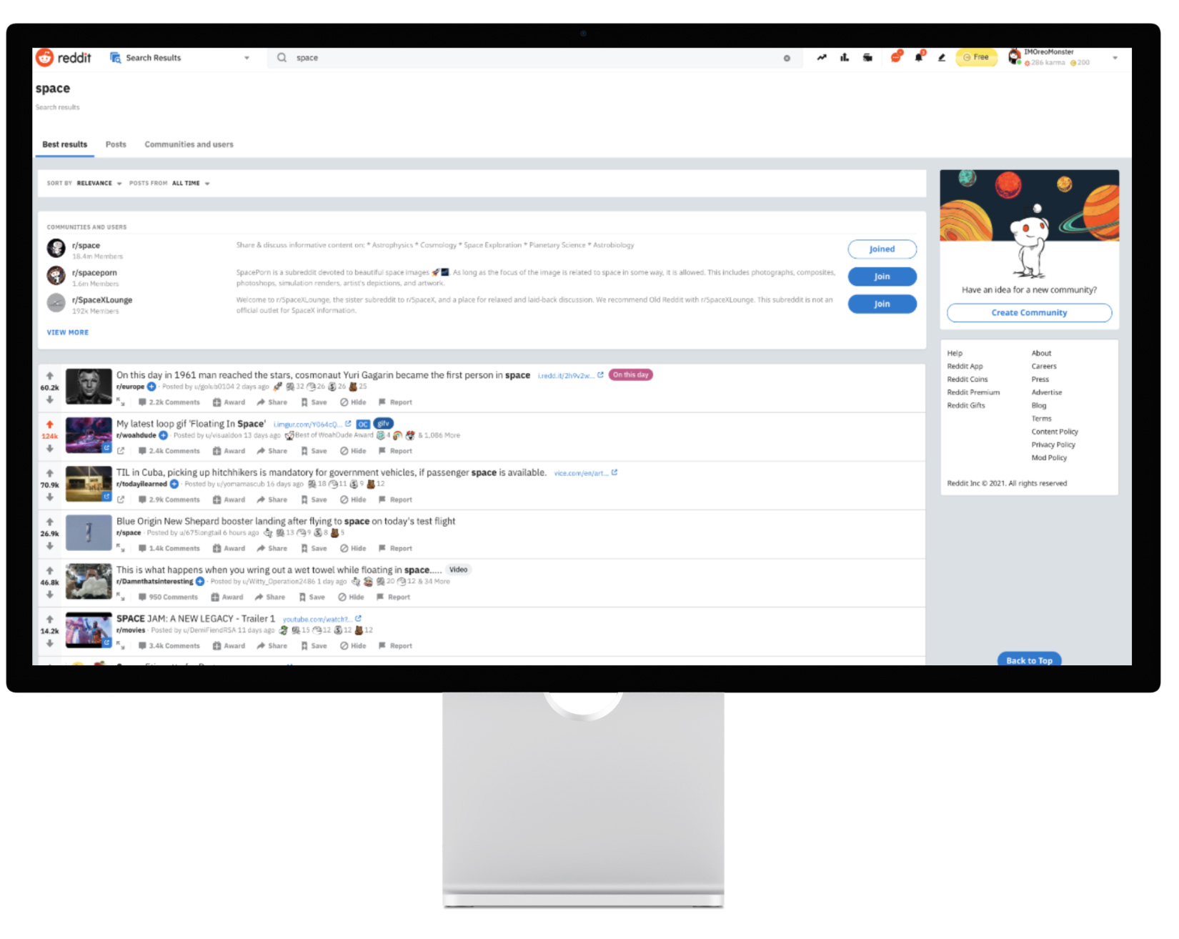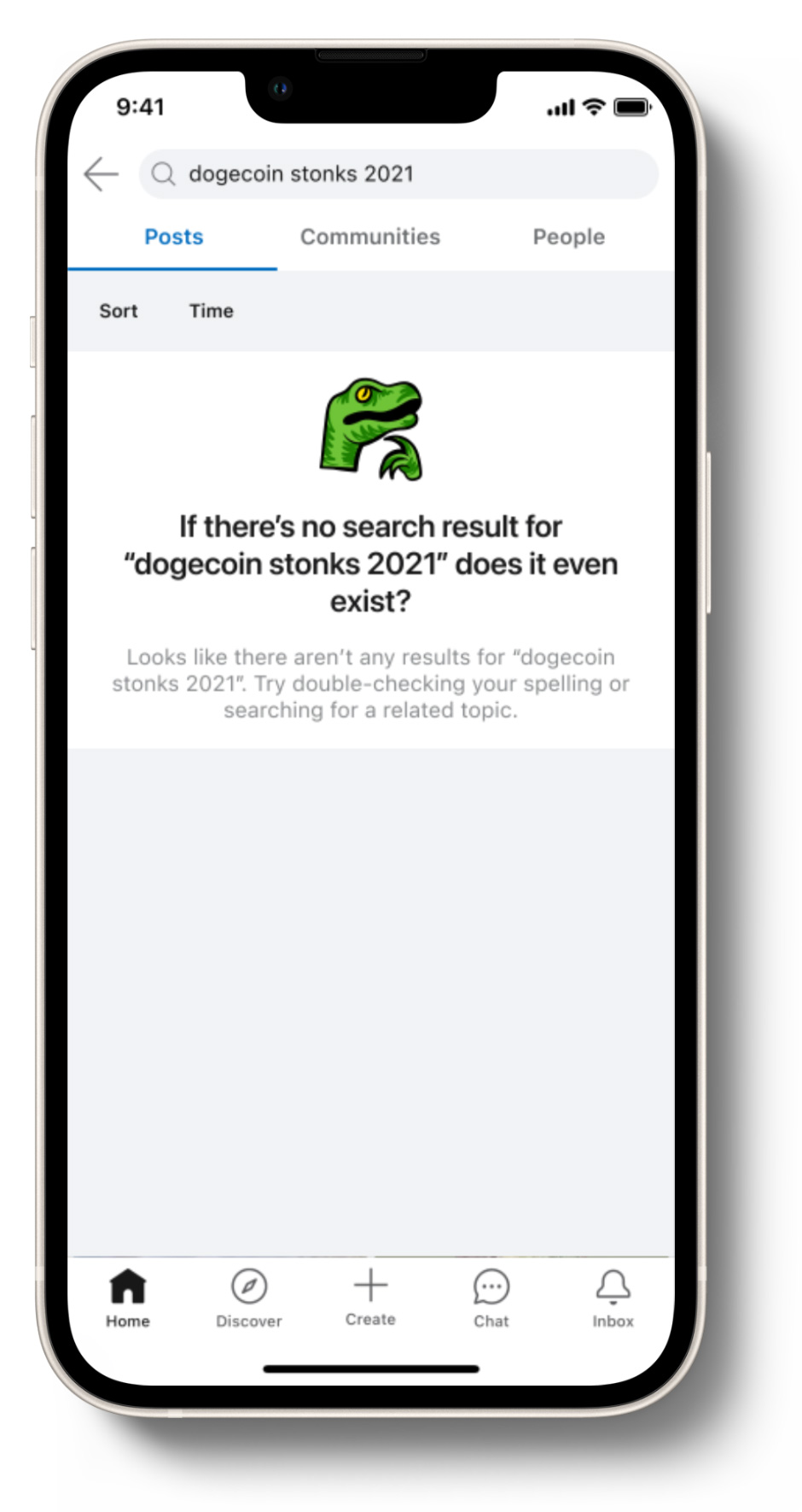 Reddit search functions really well if the search query matches exactly the post title or content. Otherwise the user gets an error saying that nothing exists on the platform with that search term. It also fails to take into account user intent.
